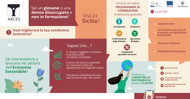 Al via i corsi di formazione gratuiti nei settori dell’Economia Sostenibile, promossi nell’ambito del progetto di capitalizzazione “advanCing youth and women sociaL inclUSion in The mEditerRanean” (CLUSTER).