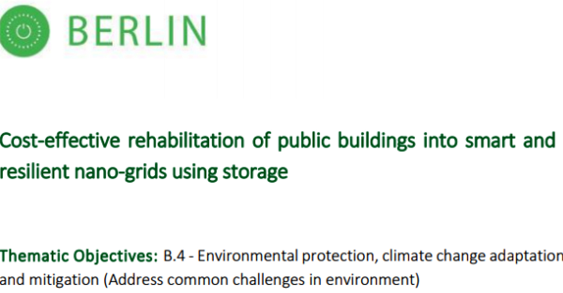Uno studio di benchmarking incentrato sullo stato attuale delle misure relative alle energie rinnovabili, all'efficienza energetica e alla gestione dell'energia negli edifici di ciascuna regione partner in 4 diversi paesi: Cipro, Grecia, Israele. Italia. È quanto realizzato dal partenariato del progetto “Cost-effective rehabilitation of public buildings into smart and resilient nano-grids using storage” (BERLIN).