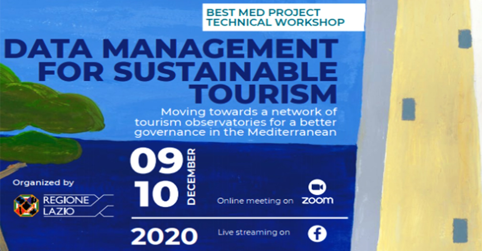 Save the date, 9-10 dicembre 2020 (h. 9.30-13.30): seminario online “Data management for sustainable tourism - Moving towards a network of Tourism Observatory for a better governance in the Mediterranean”. La due giorni rappresenta un’occasione per confrontarsi sulla governance del turismo sostenibile nel Mediterraneo, partendo dai risultati del primo anno di attività del progetto BEST MED/Interreg Med.