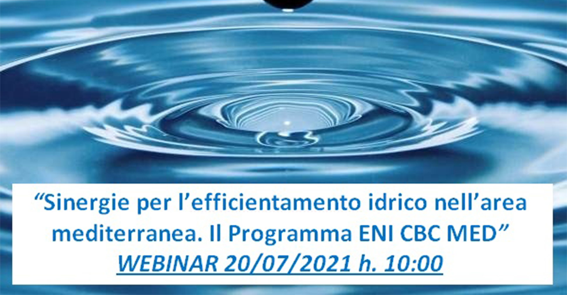Save the date: 20 luglio (ore 10:00-12:30), evento nazionale tematico “Sinergie per l’efficientamento idrico nell’area mediterranea. Il Programma ENI CBC MED”. Al centro: le strategie della cooperazione euro-mediterranea per contribuire a fronteggiare gli effetti negativi dei cambiamenti climatici su risorse preziose come l’acqua.