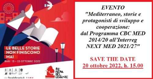 Bari, 20 ottobre 2022 – Evento “Mediterraneo, storie e protagonisti di sviluppo e cooperazione: dal Programma ENI CBC MED 2014/20 all’Interreg NEXT MED 2021/27”