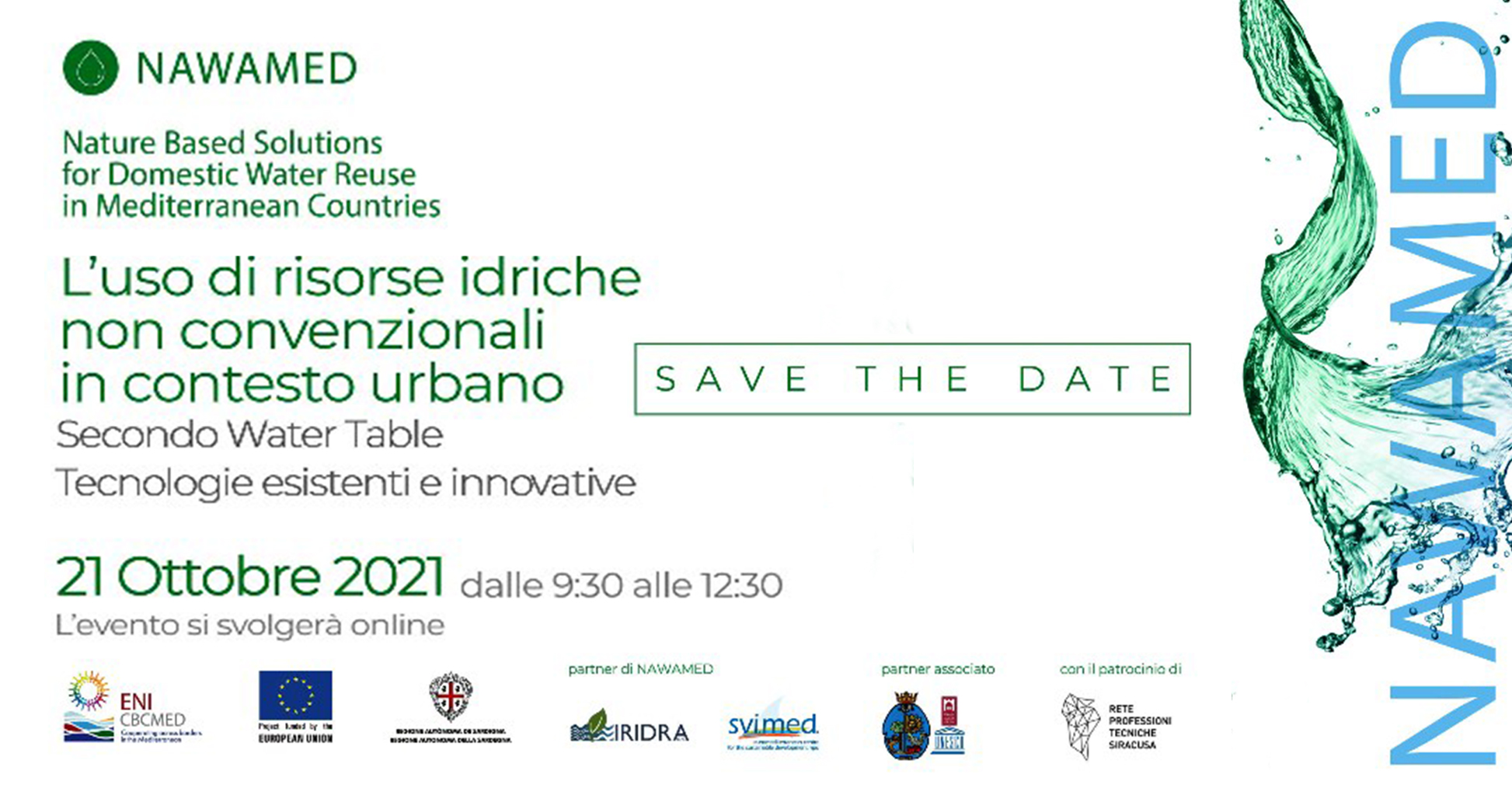 Appuntamento giovedì 21 ottobre per il secondo Water Table del progetto “Nature Based Solutions for Domestic Water Reuse in Mediterranean Countries” (NAWAMED). L’evento online (h. 9:30- 12:30) sarà focalizzato sul tema del riuso a livello urbano delle risorse idriche non convenzionali, sulle tecnologie esistenti e innovative per la progettazione di piani d'azione e per il trattamento di acque piovane e reflue.