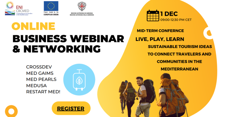 Save the date, 1 dicembre 2021 h. 9:00: i quattro progetti di turismo sostenibile del Programma ENI CBC MED – CROSSDEV, MED GAIMS, MED PEARLS e MEDUSA – organizzano una Mid-Term Conference per approfondire nuove idee che possano connettere viaggiatori e comunità nel Mediterraneo.
