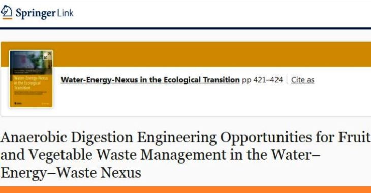 Dal Centre of Biotechnology of Sfax, partner tunisino del progetto “Employing circular economy approach for OFMSW management within the Mediterranean countries” (Ceomed), è stato redatto un articolo scientifico sulle opportunità della “anaerobic digestion”  in tema di “Water-Energy-Nexus nella transizione ecologica, progressi nella scienza, tecnologia e innovazione”.