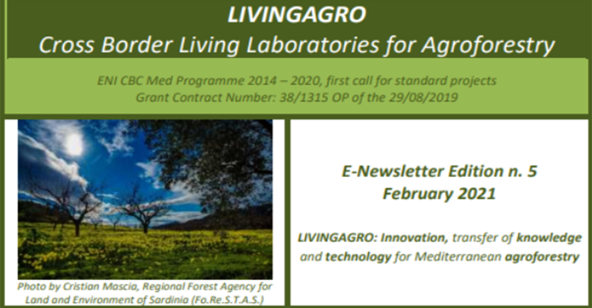 Le azioni di networking e capitalizzazione dell’esperienza ENPI CBC MED sono al centro della quinta newsletter del progetto “Cross Border Living laboratories for Agroforestry” (LIVINGAGRO), finanziato tra le iniziative Standard della prima call ENI CBC MED.