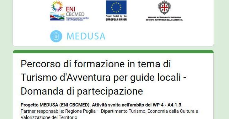 C’è tempo fino a martedì 10 gennaio per iscriversi gratuitamente al percorso di formazione di 6 incontri per guide turistiche nell’ambito del Turismo d’Avventura e del progetto “Development and promotion of Mediterranean Sustainable Adventure Tourism” (Medusa).