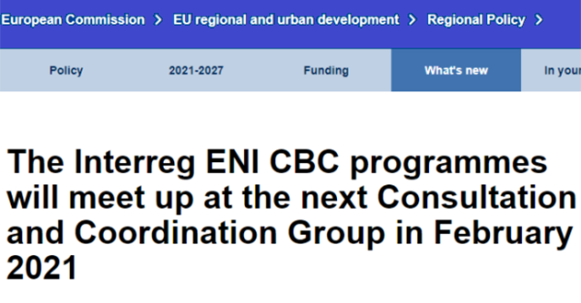 Fonte: The Interreg ENI CBC programmes will meet up at the next Consultation and Coordination Group in February 2021.