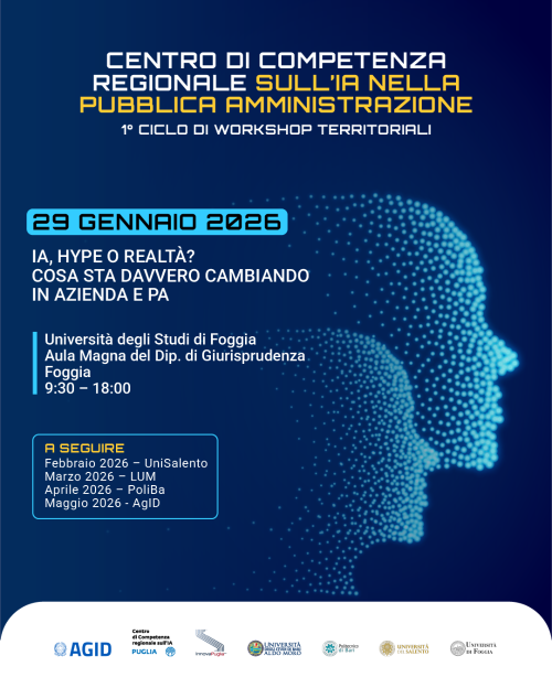 Centro di Competenza regionale sull’IA nella Pubblica Amministrazione: il 29 gennaio il terzo workshop territoriale a Foggia