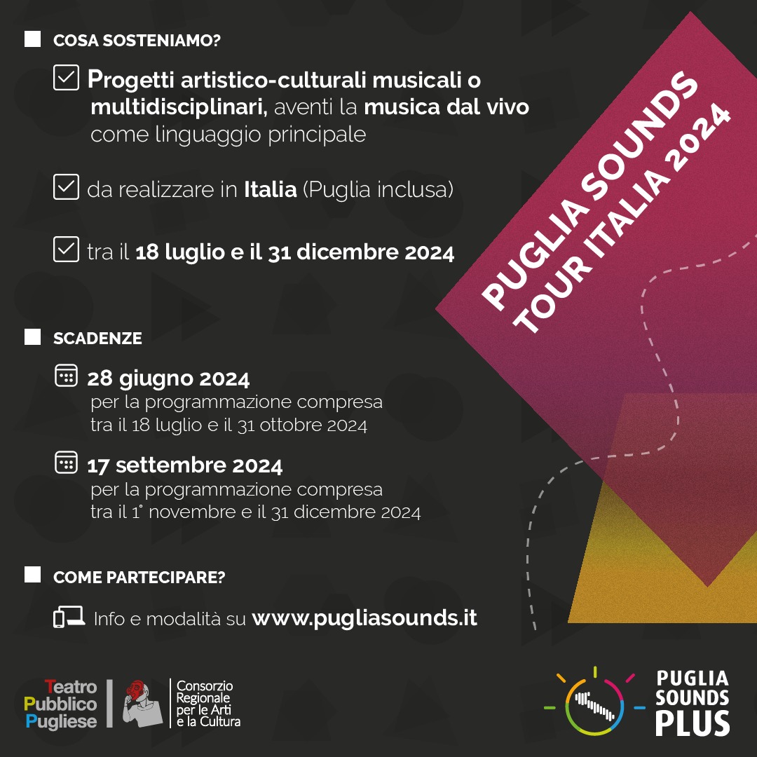 Avviso pubblico Puglia Sounds Tour Italia 2024