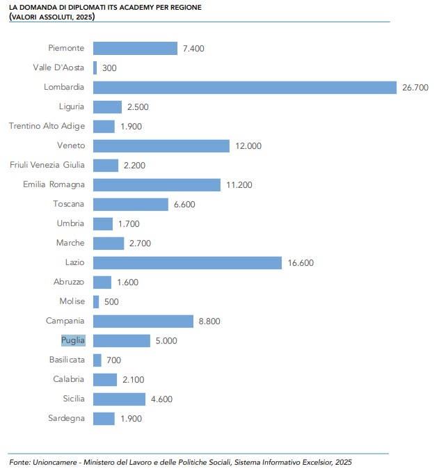 Unioncamere attraverso il progetto Excelsior (Sistema Informativo per l'occupazione e la formazione) pubblica il volume "ITS Academy e lavoro - 2025": il rapporto esamina gli sbocchi occupazionali per i diplomati degli ITS Academy mettendo a confronto i percorsi formativi dei diplomati con le reali necessità di personale qualificato espresse dalle aziende private operanti nel settore primario, nell'industria e nel terziario.